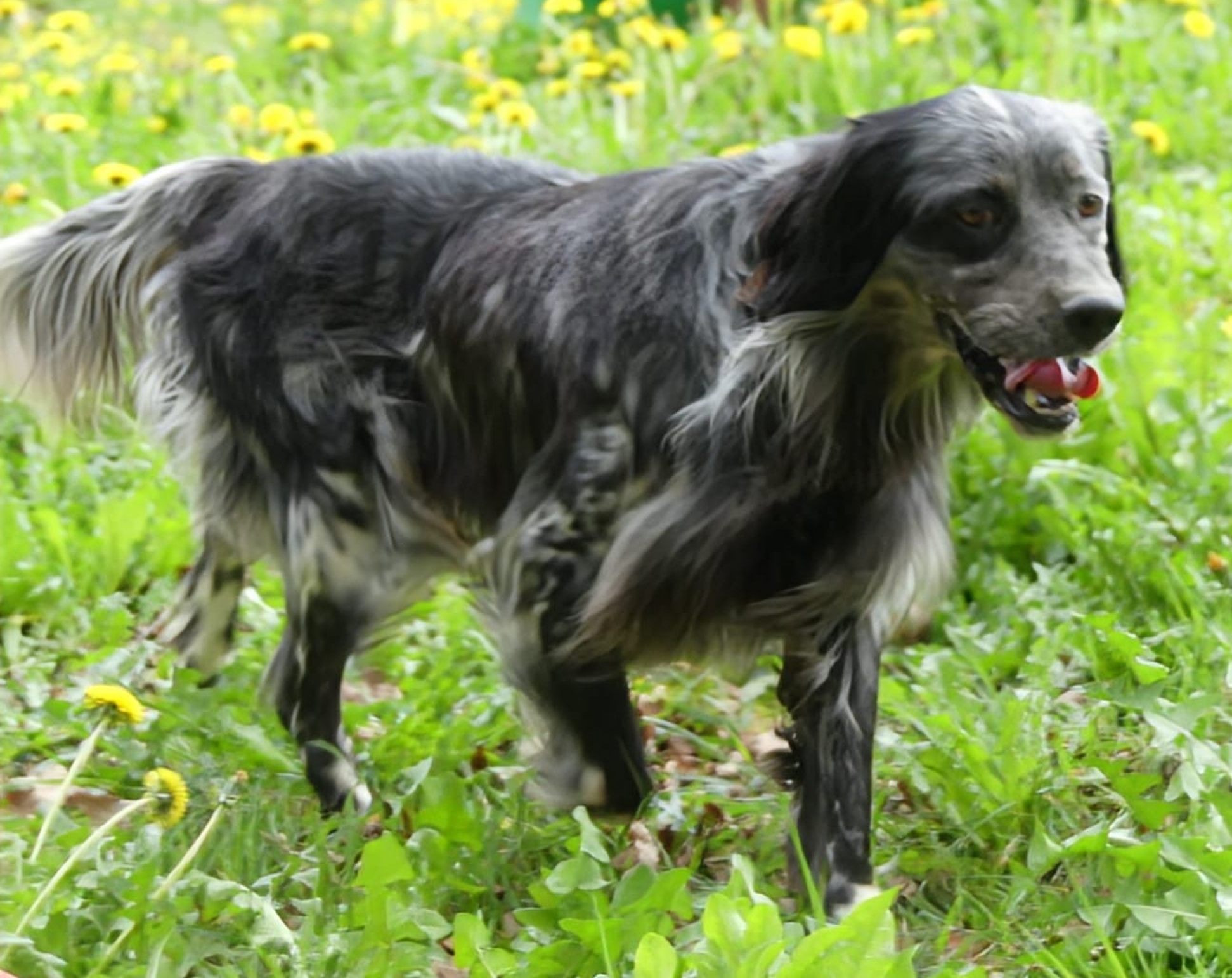 Sein Fell trägt die feinen Sprenkel eines echten Gentleman-Setters, und obwohl wir noch nicht alles über seine Vergangenheit wissen, spürt man sofort: Dieser Junge hat viel gesehen – und doch nichts von seiner Freundlichkeit verloren. Er begegnet Menschen ruhig und respektvoll, beobachtet erst, bevor er vertraut, und wenn er sich öffnet, zeigt er eine tiefe, stille Zuneigung.