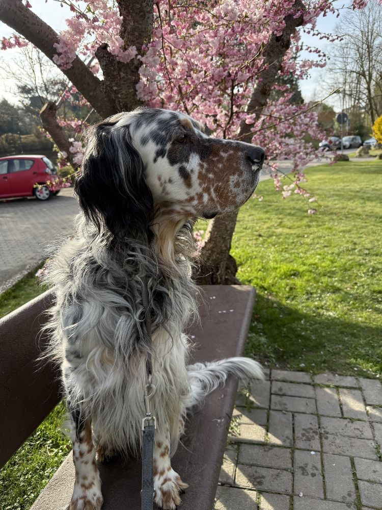 Mellow ist ein großer, fröhlicher und sanfter, kräftig gebauter, 4 Jahre alter tricolor English Setter.