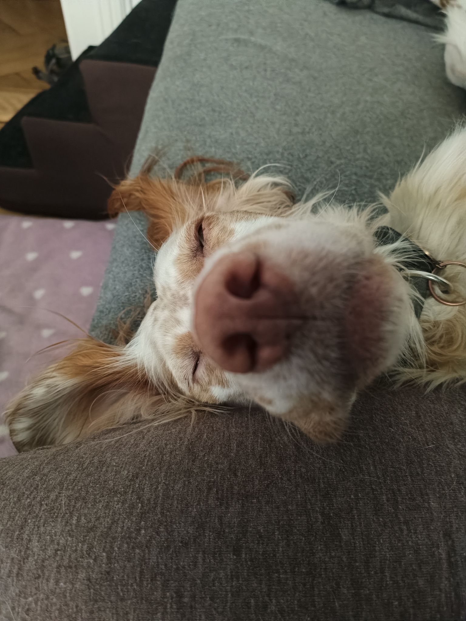 Morgens begrüsst sie uns mit einem zaghaften Schwanzwedeln und freut sich das wieder ein glücklicher Tag beginnt. Ein Tag mit vielen Leckereien, Streicheleinheiten, kurzen Spaziergängen vor der Haustüre und sich den Garten im Hinterhof anschauen.