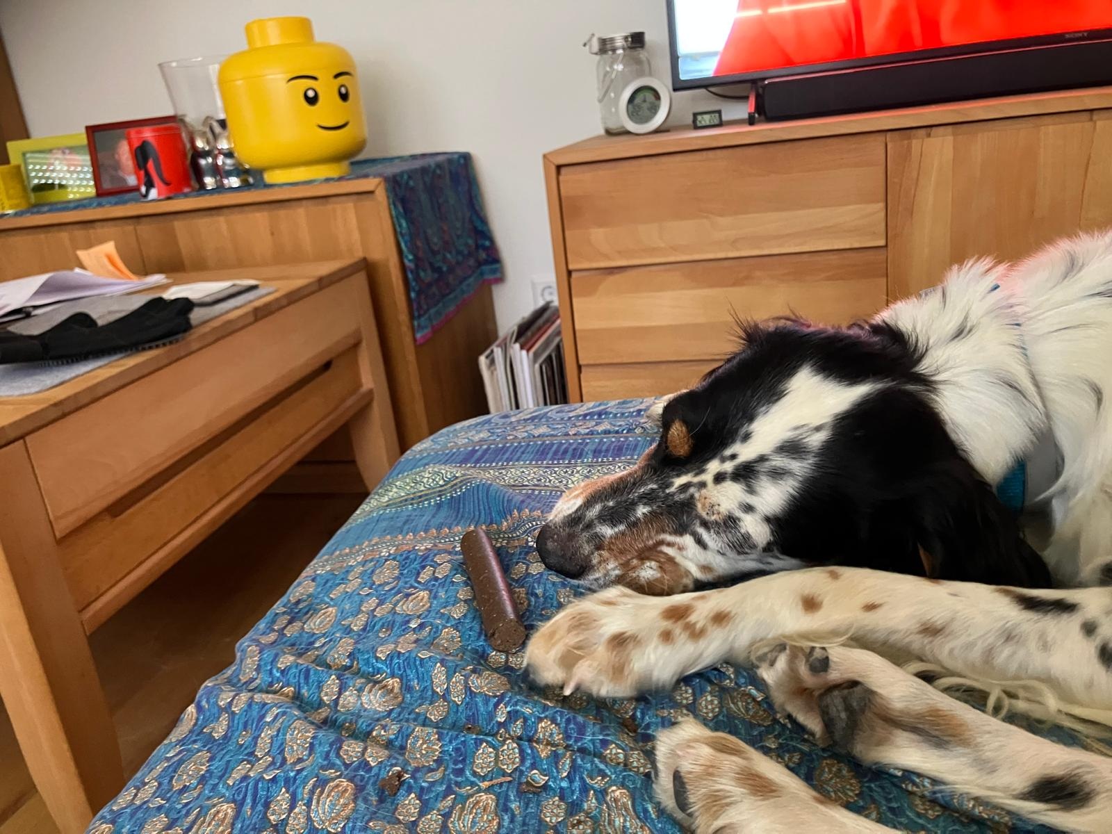 Zu Hause angekommen wurde erstmal der Garten erkundet. Wir mussten ihr zeigen, dass sie auch ins Haus darf. In den ersten Wochen hat sie das Treppe steigen gemeistert, indem sie fleißig trainiert hat. ZULEIKA ist Herrchen, mit Abstand, nicht von der Seite gewichen. Mit Geduld zeigten wir ihr wo ihr Körbchen ist und sie schlief seit der ersten Nacht neben unserem Bett im Korb im ersten Obergeschoss. Im Erdgeschoss akzeptierte sie ihren Korb, bis sie merkte, dass sie auf die Couch darf. Seitdem ist der Korb unten uninteressant und sie liebt es auf der Couch stundenlang gekrault zu werden. Nach 5 Tagen hat sie angefangen ihr Revier anzuerkennen und jeder, der zu nah an dem Zaun vorbei geht, wird angebellt. An anderen Hunden zeigt sie leider noch kein Interesse. Diese werden zur Not mit Bellen auf Abstand gehalten.
