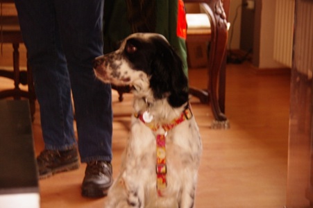 Mittlerweile habe ich auch schon sitz auf Kommando gelernt. Das kann ich wirklich gut. Auf meinen Namen höre ich auch schon, auch wenn ich es manchmal überhören will. An der Leinenführigkeit muß ich noch einiges üben.