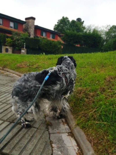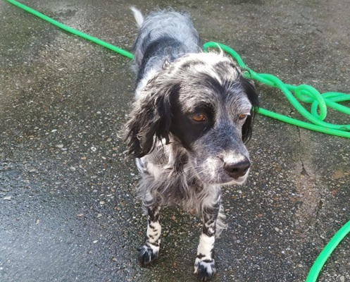 Die kleine Maus ist eine kleine fröhliche Powerkugel. Sie wedelt immerzu mit dem Schwanz sobald man sie anschaut. Sie hat sich sehr schnell an meine Fersen geheftet und folgt mir nun auf Schritt und Tritt. Im Haus angekommen, hat sie sich sehr schnell eingefunden und rast fröhlich durch den Garten. Sobald im Haus aber nix los ist, legt sie sich auf die Seite und schläft. Sie ist sauber, frisst gut und ist auch sonst gesund. Draußen ist sie eine ambitionierte Jägerin. Raben, Vögel, Enten, Schwäne waren wohl ihr Job vorher. Aber sie bleibt auch immer wieder stehen und guckt, wo ich bin. Mit Nele versteht sie sich prima. Die beiden gehen sehr entspannt und liebevoll miteinander um.