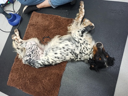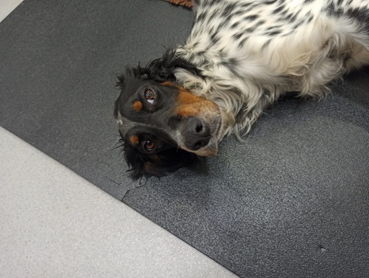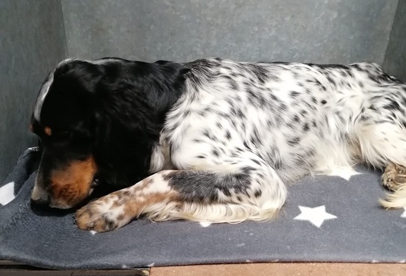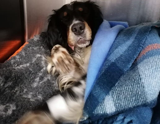 JESTER ließ auch keine Gelegenheit aus, der kleinen verschreckten, kaum aus den Kinderschuhen gewachsenen Setterhündin zu zeigen, dass eine bessere Zukunft auf sie wartet. Kaum war sie aus der Narkose erwacht, fand sie schon ihr Setterlandticket auf ihrem Kopfkissen liegen.