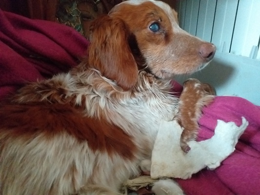 ANKER ist unser kleiner Kämpfer. Von seinem Jäger halbtot geschlagen, hat sich der süße dreijährige Bretone nicht aufgegeben: Sein Gesundheitszustand bessert sich und er hat schon 2,2 kg zugenommen. Er sieht schon so viel besser aus. Wir sind alle unglaublich stolz auf ihn.