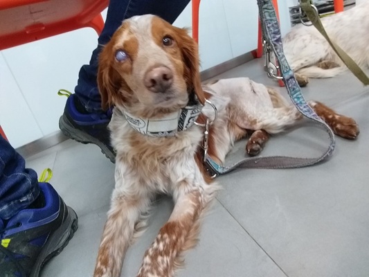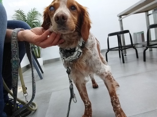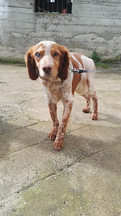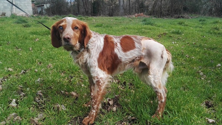 Die Jagdsaison in Spanien ist beendet und wie viele unserer Jagdhunde war er ein Opfer dieser üblen Zeit! Sein Jäger misshandelte ihn in seinem Zwinger, schlug ihm immer wieder auf den Kopf und die Wirbelsäule und der kleine Kerl hatte nicht den Mut sich zu wehren, sondern ertrug seine Qualen.