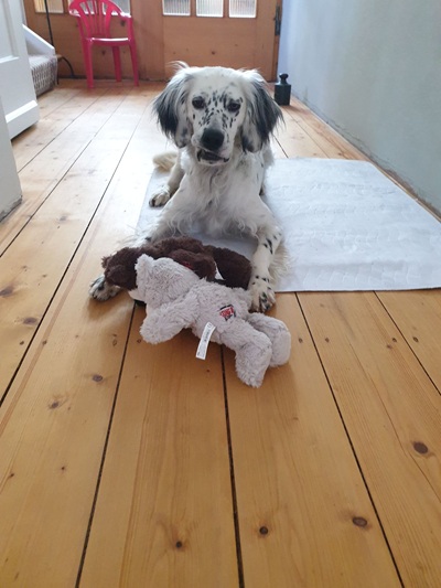 ARGI kam wohlauf und putzmunter am 08. Mai 2021 im Setterland an. Sie ist eine fröhliche und aufgeschlossene Hündin, neugierig und verspielt. ARGI hat schnell Vertrauen gefasst, schmust gerne und genießt sehr gerne ausgiebige Streicheleinheiten. Sie hat ein sehr sensibles Wesen, lässt sich aber durch wenig erschrecken. Bei Begegnungen mit fremden Hunden zeigt sie sich zurückhaltend.