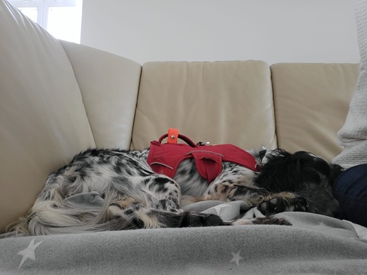 Das Zusammenleben in der Familie klappt wunderbar auch mit den beiden Hunde Oldies Güelo und Lenny.