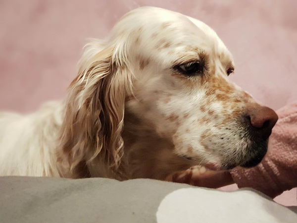 Der hübsche Orange Belton Rüde muss nun im Zwinger bleiben, während die anderen mit auf die Jagd gehen dürfen … traurig schaut er ihnen hinterher …. allein und zurückgelassen … einsam und überflüssig …. bleibt ihm nichts anderes über als zu warten.