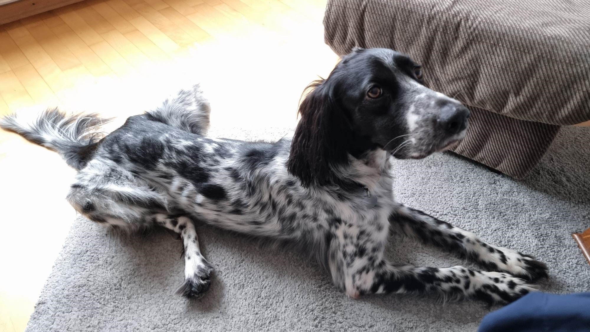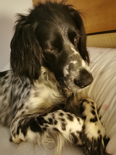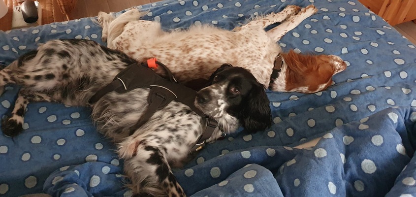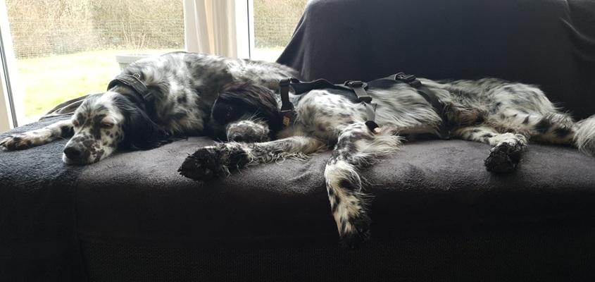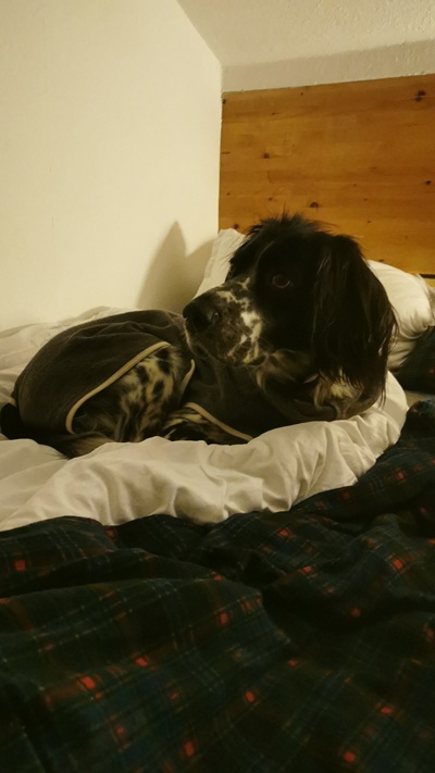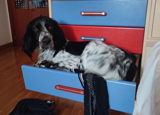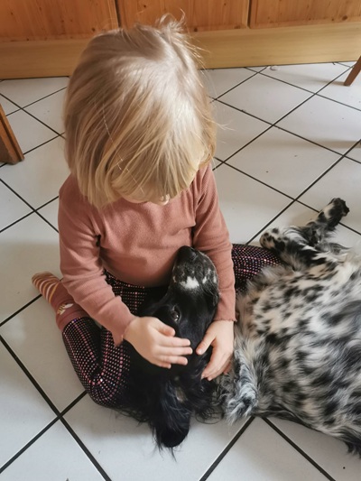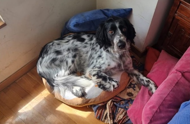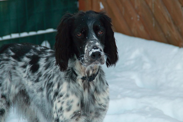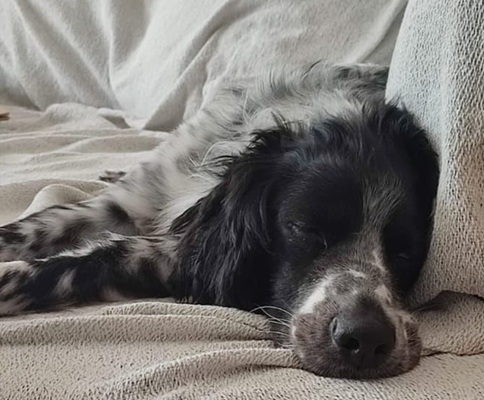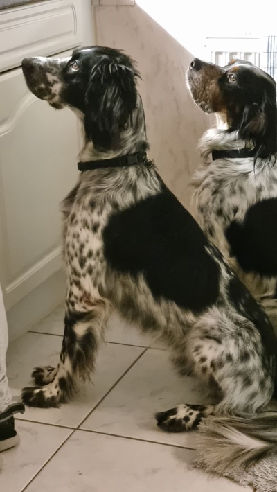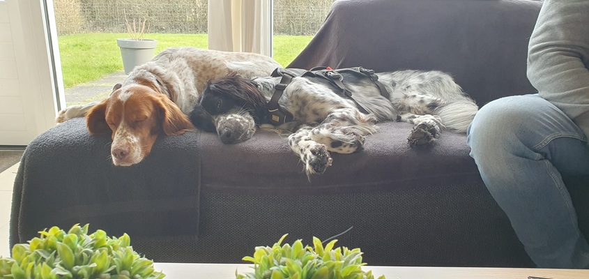 BELTZ kam gesund und munter am 16. Dezember 2023 im Setterland an. Er ist mit 59cm Widerristhöhe eine stattliche Erscheinung, sehr gepflegt, hat seidenweiches Fell und ist recht muskulös. Im Haus ist er ein Schmuser vor dem Herrn, schläft viel und bewegt sich elegant, ohne etwas zu beschädigen.