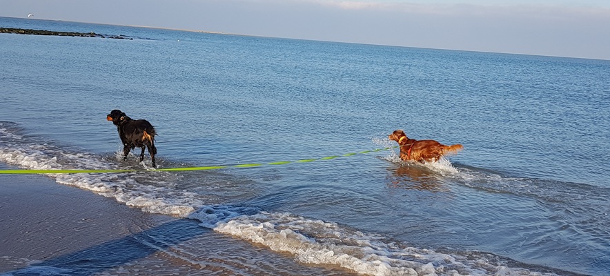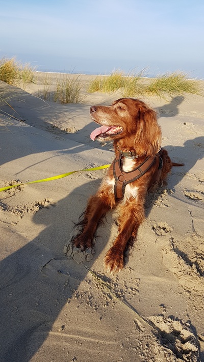 Unsere langen Spaziergänge am Meer und durch die Dünen hat sie sehr genossen. Auch liebt sie das Meer. Ausgelassen sprang BONNY durch die Wellen und buddelte im Sand. Da zeigte sich wieder, dass ein 9 jähriger Setter noch lange nicht zum alten Eisen gehört!