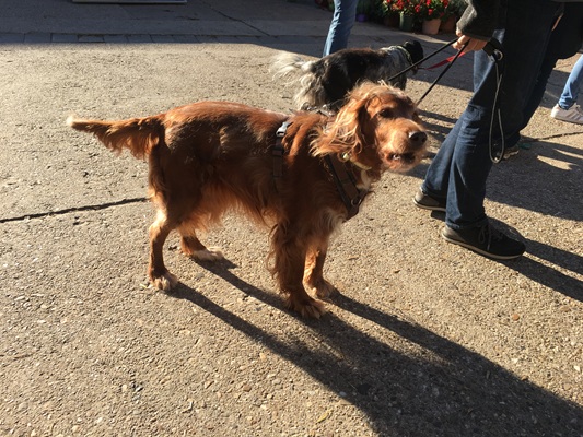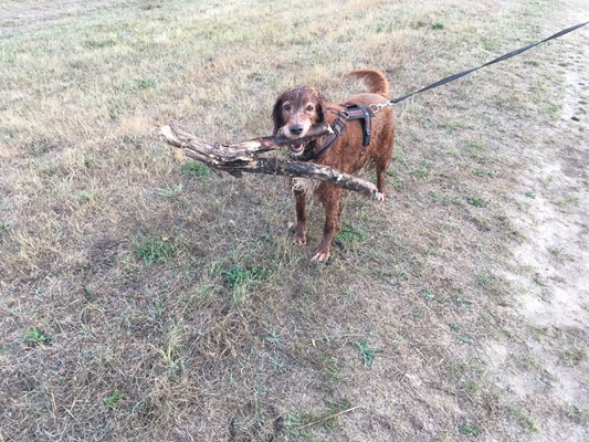 Strammen Schrittes geht es dann zur Tür hinaus, vom Übergewicht ist draußen nichts zu merken. Schnell flitzt Sie von einem Fleck zum andern, weil es ja soooo gut riecht und überall kann man so viele Sachen finden wie riesige Stöcke und Tennisbälle, da vergisst Sie zwischendurch auch schon mal, dass da ja noch jemand an der Leine hängt.