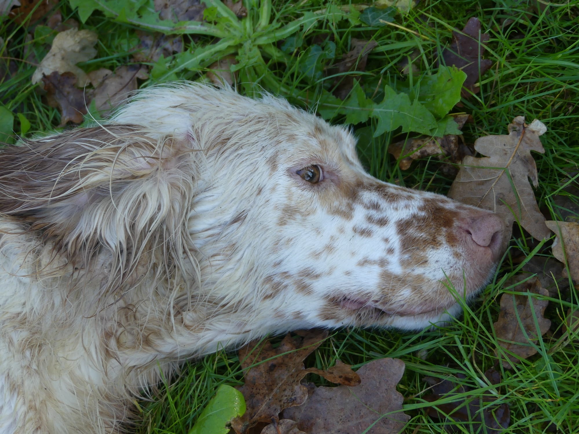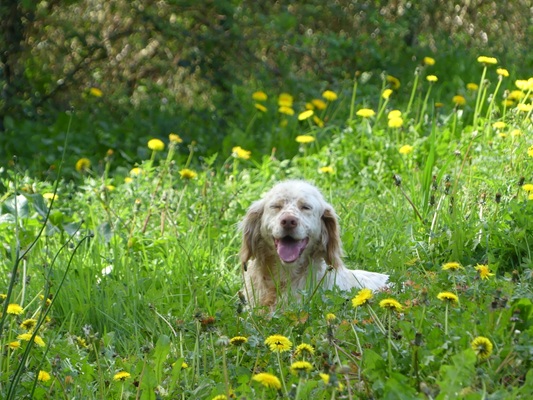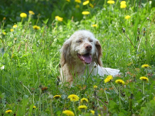 Oft reckt sie auch einfach nur ihr orangenes Näschen in die Sonne und genießt die Wärme und den leichten Wind, der sie umspielt. Danach überkommt es sie oft und sie flitzt wild über die Wiese und wälzt sich glücklich in einem Blätterhaufen.