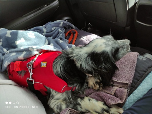 In meinem Für Immer Zuhause fühle ich mich schon richtig wohl, aber wenn ich mein Haus und meinen Garten verlassen soll, um ‚Gassi zu gehen‘, da geht es mir manchmal noch nicht so gut damit. Da habe ich vor vielen Dingen noch richtig Angst und kann mich dann oft erst keinen Meter wegbewegen, weil ich viele Dinge und Geräusche ja auch nicht kenne. Meine Menschen haben mir gesagt, dass ich alles ganz langsam kennenlernen darf und sie mir alle Zeit der Welt lassen. Alles in allem bin ich einfach nur glücklich und zufrieden, dass ich im Setterland bin.