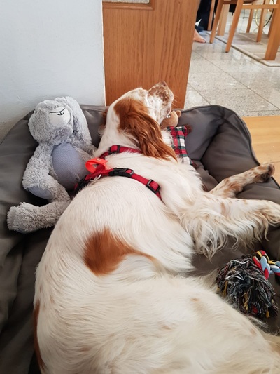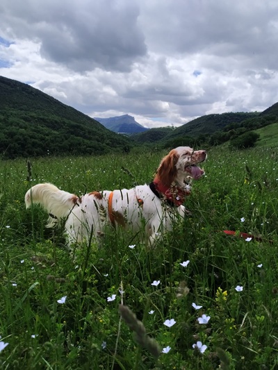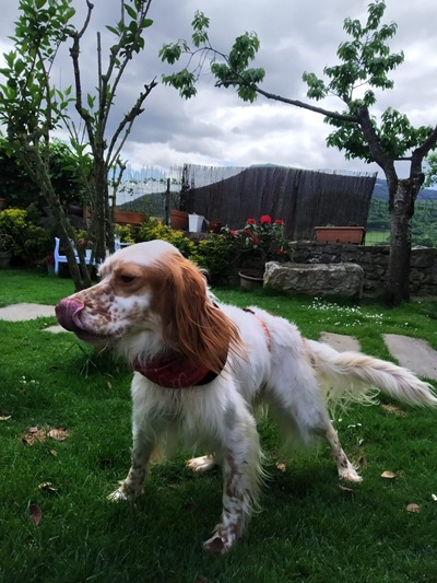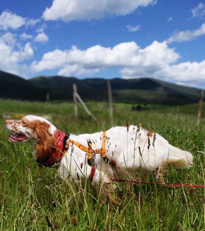 CALA kam gesund und zunächt recht schüchtern am 26. Juni 2021 im Setterland an. Sie ist ganz wunderbar, an Allem interessiert und sehr verschmust! Außerdem ganz entspannt und liebt die Tage mit uns zu verbringen.