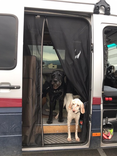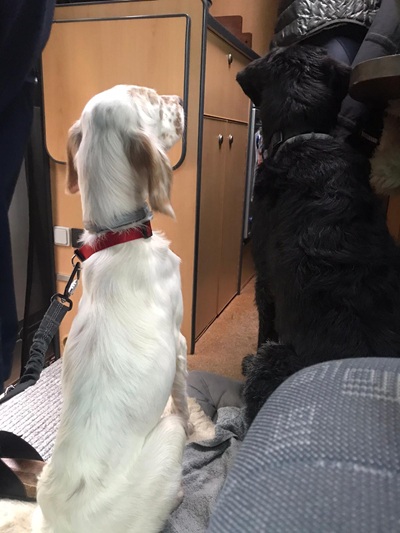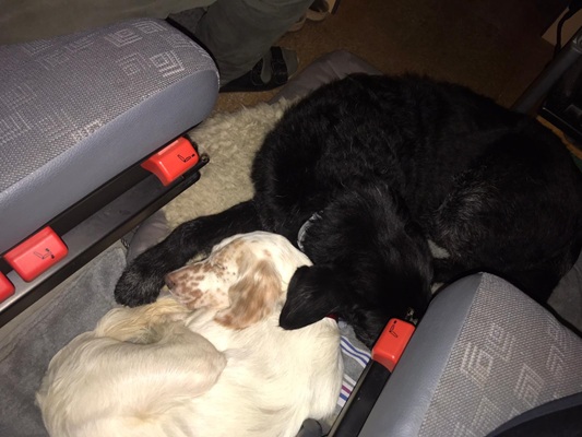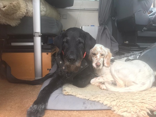 Es war zu Beginn zwar alles etwas eng auf den rollenden acht Quadratmetern, in denen auch bereits ein großer Riesenschnauzer lebte, aber was solls! CARA hat sofort ihren Platz gefunden und ist inzwischen ein richtiges Dreamteam mit ihrem Hundekumpel. In den Bergen durch den Schnee rennen, am Meer über den Strand jagen, querfeldein durch dorniges Gebüsch kämpfen oder vom Beifahrersitz aus die Welt bestaunen – herrlich! Aktivitäten, das ist CARAs Passion.