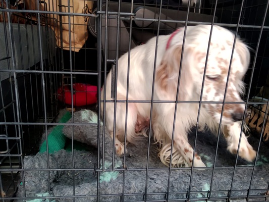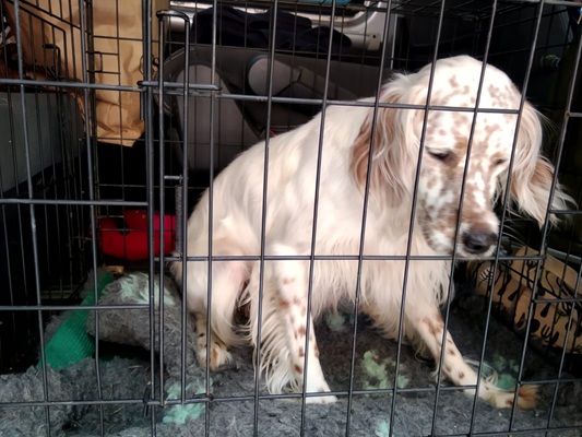 Eigentlich war also alles soweit gut für CHUSPI, bis der Tag X vor zwei Wochen kam. Plötzlich stand ein spanisches Team bei ihrem Jäger und wollte sie reservieren. Sie nannten sich Setter Rescue Team und brachten noch JESTER mit – den Schutzpatron von einem sogenannten Setterland. Sie lauschte erschrocken von ihrem Zwinger und schaute zu ihrem Jäger und den fremden Personen. “Reservieren können Sie den Hund nicht. Sie wird dem Nächstbesten in die Hände gedrückt, der sie haben möchte. Ich habe keine Zeit mehr und will CHUSPI loswerden …!”