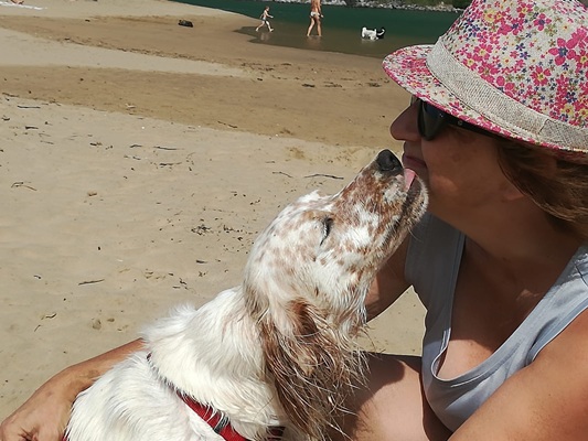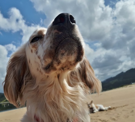 CHUSPI ist eine junge Orange Belton Dame mit sehr guten Manieren und wunderschön gepflegtem Fell. Darauf hat die hübsche Setterine immer Wert gelegt, denn sie wollte ihrem Jäger gefallen. Überhaupt ist es CHUSPI wichtig, ein gutes soziales Umfeld zu pflegen, weswegen sie immer freundlich und höflich mit Hunden und Menschen umgeht. Eine gewisse vornehme Zurückhaltung am Anfang hat sie schon, aber hat sie die Chance gestreichelt zu werden, fallen direkt alle Mäuerchen und sie kann gar nicht genug Zärtlichkeit abbekommen.