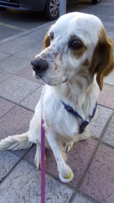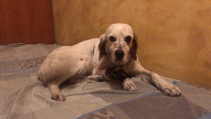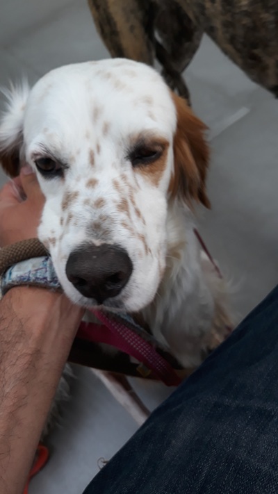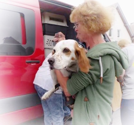 Am Samstag letzter Woche bin ich mit 5 meiner spanischen Gefährten nach einer langen Fahrt in Köln bei den Setter Rescue Germany Leutchen gelandet... war das aufregend!!! Aus dem Auto wurde ich sofort in Vera‘s Arme gelegt, Vera ist mein neuer Mensch... komisch, die musste heulen, als sie mich in den Garten zum pipimachen trug..aber sie hat mir später erzählt das wäre deswegen gewesen weil sie sich so sehr auf mich gefreut hätte ... auf mich??? Ich bin doch eine Humpelsetterine und habe gedacht, deswegen will mich keiner... aber Jester hat mir schon in Spanien ins Ohr geflüstert, das es diesen verrückten Menschen im Setterland nicht darauf ankommt, ob einer von uns schüchtern, ängstlich, deprimiert, unerzogen, wild, krank oder alt ist... die haben alle ein riesengroßes Herz und da passen wir alle rein.