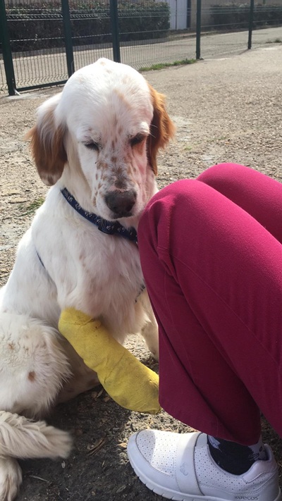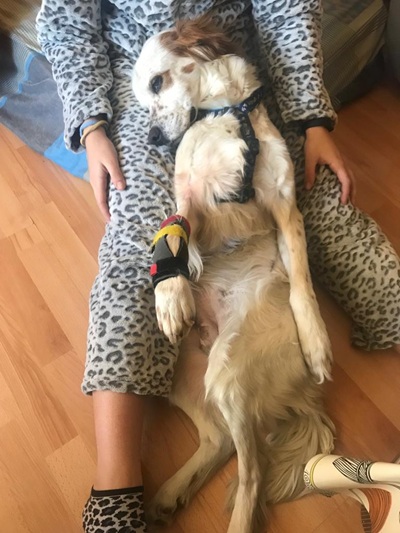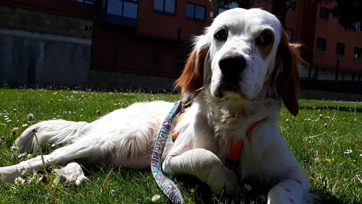 Unser JESTER machte sich direkt auf den Weg und unser spanisches Team holte die Hündin von der Straße und brachte sie direkt in eine Tierklinik, wo sie medizinisch versorgt wurde. Mittlerweile ist die liebenswerte Hündin wieder wohlauf, einziges Dilemma: Ihre rechte Vorderpfote will noch nicht so wie sie. Dabei möchte sie am liebsten losrasen mit den tollen Menschen um sie herum, die sie gerettet und gepflegt haben. Und sie so gerne kuscheln.
