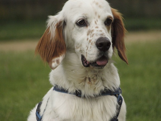Glänzendes weißes Fell, süße Sommersprossen um die Nase und ein liebes und fröhliches Wesen – so kommt die siebenjährige orange Belton Hündin CORA über die Wiese gelaufen. Als wäre die Welt in Ordnung, aber das ist sie zurzeit bei ihr gar nicht.