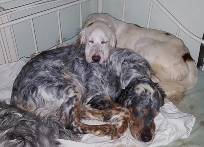 14.1.2016 CYRUS schläft immer sehr brav. Hat das erste Mal mit seiner Freundin Rainy und den anderen im Tagesbett geschlafen. Er hat auch keine angst vor Staubsauger, Mixer und Kaffeemaschine - er orientiert sich da an seinen Setterkumpes die alle gelassen bleiben.