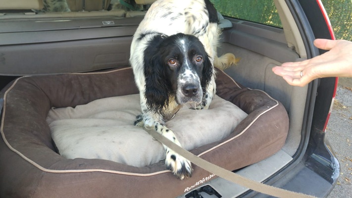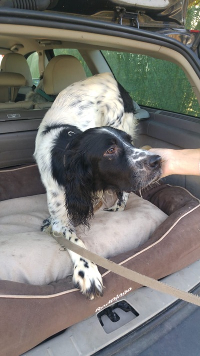 D'ARTAGNAN kam wohl auf und recht schüchtern am 08. Dezember im Setterland an. Er ist noch sehr schreckhaft, aber auch neugierig und an allem interessiert. Auch das Autofahren klappt prima, Deckel auf und er ist schon drin.......