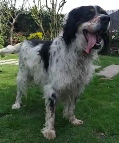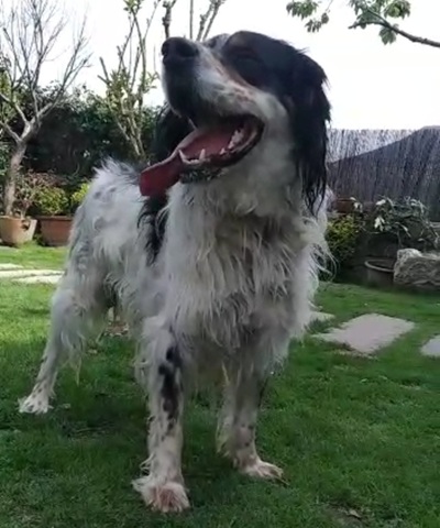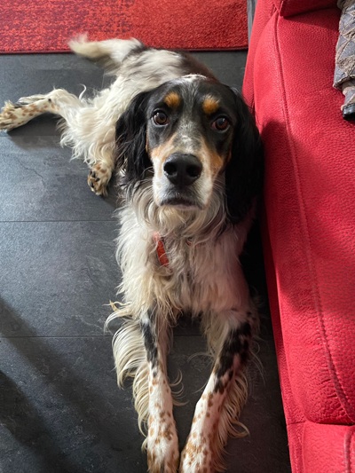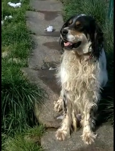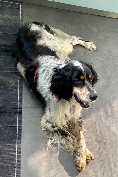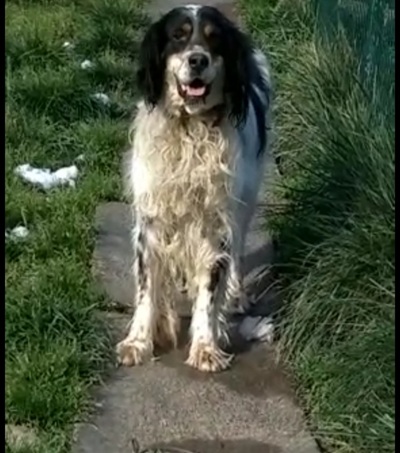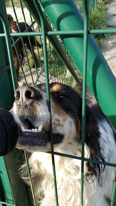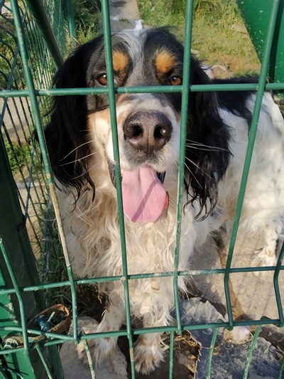 DALTON ist nun in Sicherheit und hat ein warmes und trockenes Plätzchen in JESTERS Residenz bekommen. Er freut sich über jeden Menschen, der ihn dort anspricht und ihn streichelt … klar, er ist natürlich auf Streichelentzug. Er wartet nun auf seinen „Friseurtermin“, um endlich mal wieder wie ein Setter auszusehen, denn eigentlich legt er viel Wert auf ein gepflegtes Äußeres. Und außerdem legt er im täglichen Auslauf immer einige Sprints ein, denn er will sein leichtes Übergewicht loswerden.