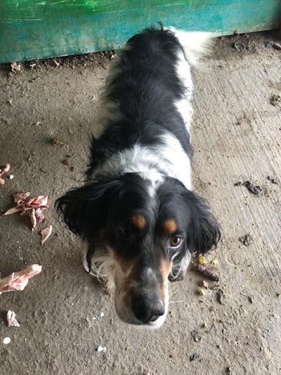 JESTER griff sofort die Autoschlüssel und fuhr in das Dorf, um sich den armen Setterrüden mal genauer anzusehen. „DALTON“ stand auf seiner Zwingertür, die mit einem rostigen Schloss abgeriegelt war. Er klingelte auf dem Hof und ein kleiner Mann öffnete mürrisch das Tor. JESTER brauchte keine zwei Sätze zu sagen, da holte der kleine Mann DALTON aus dem Zwinger und gab ihm den eigentlich hübschen Rüden mit. „Ich habe ihn vor ein paar Tagen gefunden, möchte ihn aber nicht behalten! Nehmen Sie ihn gerne mit.“