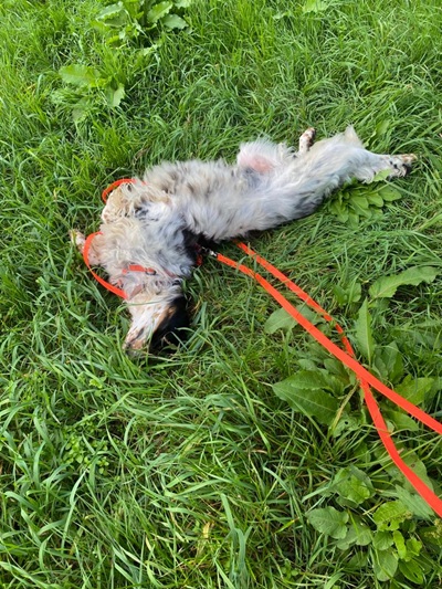 Quirliger, junger Rüde, der die Welt entdeckt. Treppen und Auto fahren sind keine Hindernisse. Stubenrein ist er auch. Neugierde sein zweiter Name. Alles wird beschnüffelt und begutachtet.