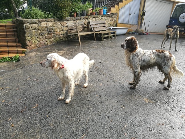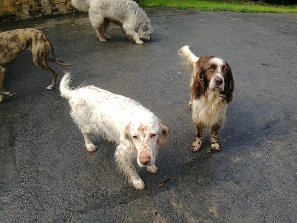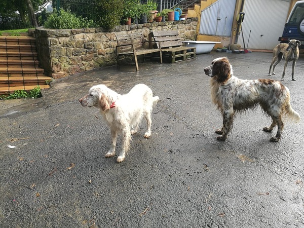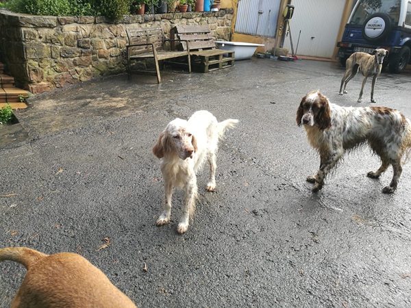 Maybe you don't know who's this handsome boy... His name is Dil and he has become our symbol for going on with our fight for them. In June, he was given away by a hunter, Dil was 10 years old and he was not useful for hunting anymore. The German team immediately said yes and Angela and Ralf immediately offered him a home. Everything seemed perfect, but that's where Dil started his fight for life and Angela, Ralf, the German team (Ralf in a direct way) and my brother... and I started suffering for him. He had leishmania, an enormous spleen (more than 7 times its normal size) and a severe anaemia, so his trip to happiness was delayed... After a lot of cares and medicines while fostered with my brother, he seemed to be doing better... but everything changed a week ago, he was getting worse and there were two solutions... letting him die or a risky surgery. No doubt we all decided giving him the chance to fight for his life and he did... after several days of uncertainty, last weekend he started to improve and now he's as happy as you can see in the videos leaving the vet. We must be cautious, but he seems to be doing really welll. Dil is an old dog, for many unknown and useless, but for us he is a symbol of our fight... he's a wonderful oldie who wants to live the sweet side of life and we hope he can be in Setterland by the 15th of September. Thanks for the big support of the German team, thanks Ralf for your unconditional support and care. And thanks Angela and Ralf for your help, support, care, worries and for standing next to Dil and waiting for him until he was in good condition to travel. Your love for him even though you didn't know him in person, your plans to drive to take him though it finally wasn't posible show that there are a lot of crazy people who knows what's important in life and that we are not alone in our fight. Dil, it's your time to be happy and show that bloody hunter that your life is so precious that we never had any doubts to do whatever was necesary for you and now you'll have the oportunity of being forever happy. It's amazing his strength and his happines while leaving the vet today... today is a great day for the family of SRG