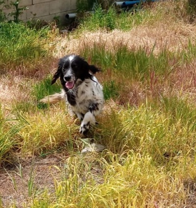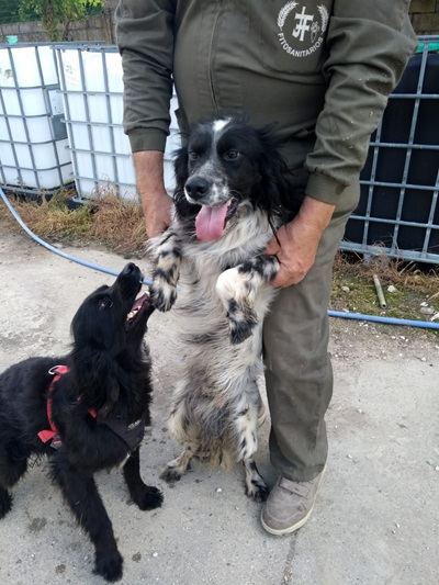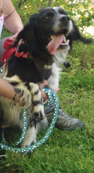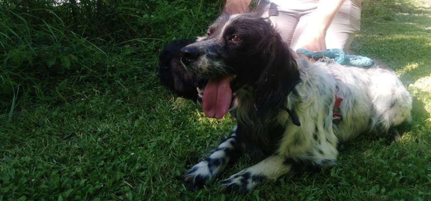 DUFFY ist ein vierjähriger Blue Belton – Rüde, ist sofort zutraulich und springt JESTER in die Arme. Der hübsche Rüde ist sozialverträglich und eine richtige Frohnatur. Er erzählt JESTER, dass sein Jäger ihn zwar für die Jagd angeschafft hat, aber eigentlich saß er nur in dem Verschlag und hat kaum arbeiten dürfen. Jetzt hat er nur noch einen Wunsch: Raus ins Leben, seine Familie finden, gemeinsam durch die Natur zu streifen und seine Ohren im Wind flattern lassen. DUFFY ist natürlich wichtig, was mit seinem Sohn TOMMY passiert. „Natürlich werdet ihr Beide ab jetzt unter dem Setterlandstern stehen und auch für TOMMY suchen wir ein schönes neues Zuhause!“