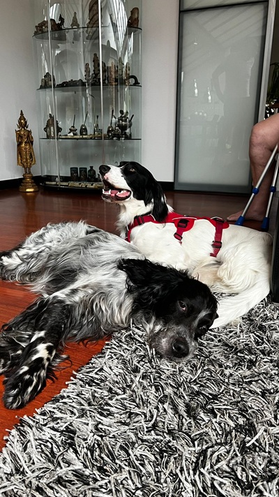 DUKY kam gesund und munter am 30.07.2022 im Setterland an. DUKY ist ein hübscher Junghund mit zurückgewonnener Freude am Leben. Dank der fantastischen Arbeit der Tierärzte im Baskenland kann er sich hervorragend bewegen. Echt bemerkenswert!