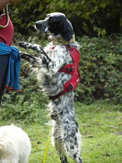 Er orientiert sich sehr an Moritz, was viele Erziehungsschritte vereinfacht, da er Moritz kopiert. Auch bei Schreckzeigen zeigt er keine Aggression.