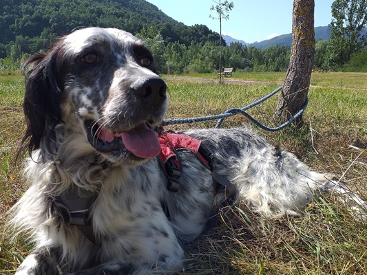 Scotty kam als sehr ängstlicher Hund an. Zitteranfälle und situativ leichte bis mittelschweren Panikattacken (flatternde Planen, schnelle Hand-oder Armbewegungen bsp.