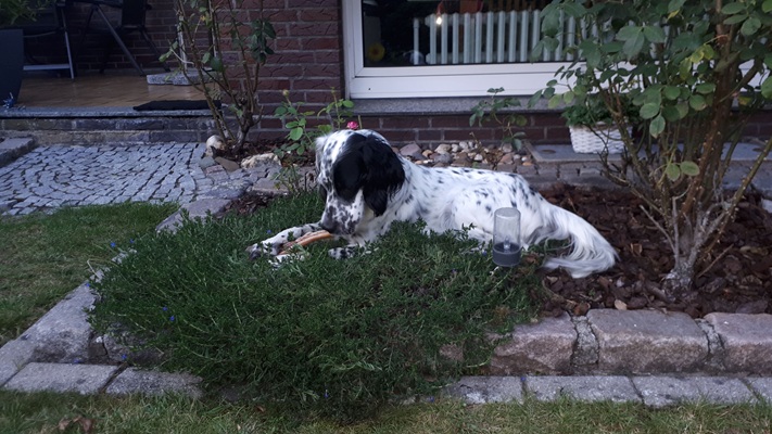 EKAIN ist gesund und munter am 05. September 2020 im Setterland angekommen. Er ist ein aufgeweckter, lieber und kuscheliger Goldschatz. Und ein richtiger Clown, der am liebsten den ganzen Tag spielen und kuscheln möchte. EKAIN tut so als wäre er immer schon bei uns. Ich kann sagen er ist einfach unkompliziert. An der Leine zu laufen fällt im noch schwer. Er lässt sich von den Vögeln noch sehr ablenken. Der erste Spaziergang war schon anstrengend an der Leine. Und heute war es schon viel besser, so das er schon etwas geschnuppert hat, anstatt nur in die Luft zu schauen.