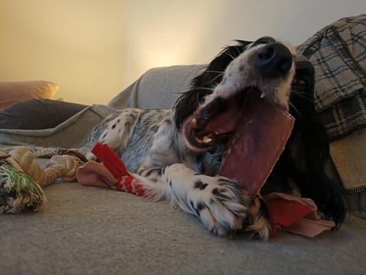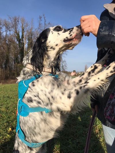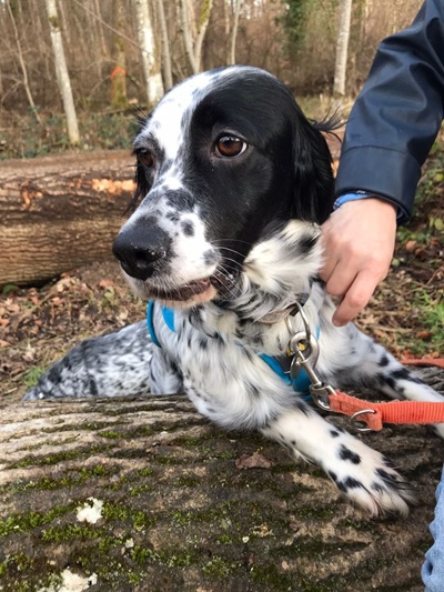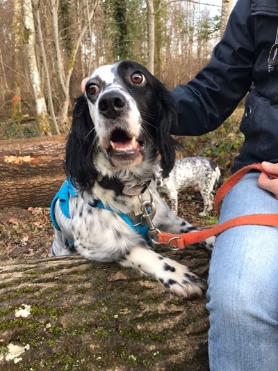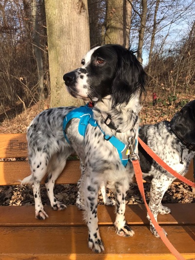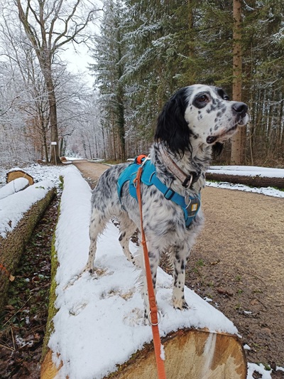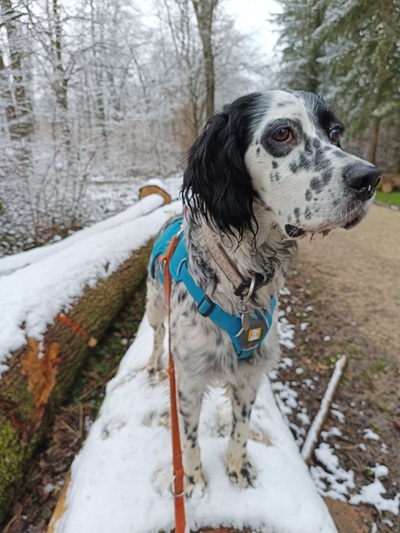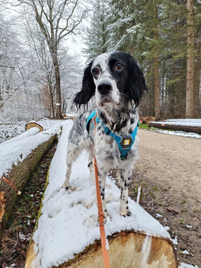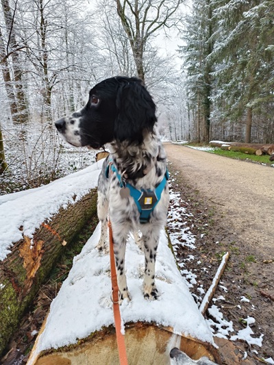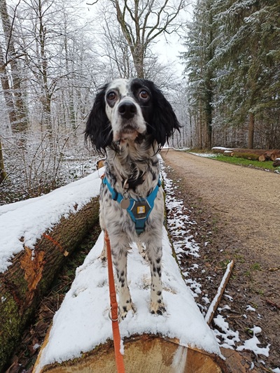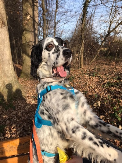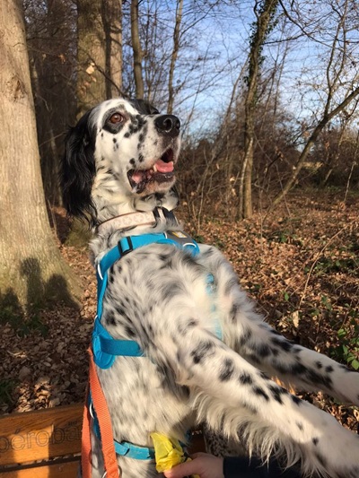 In Feld und Wald ist sie Setter typisch sehr aktiv und geht mit ihrer Nase den Spuren nach. Aber sie ist auch sehr gut abrufbar und freut sich über die Aufmerksamkeit ihrer Menschen und die Belohnung wenn sie etwas richtig gemacht hat. Sie möchte einfach gefallen und lernt gerne und sehr schnell. Sie kann auch schon Sitz machen …. Äh das konnte sie vorher schon sagt sie mir grad, aber jetzt macht sie es auf mein Kommando.