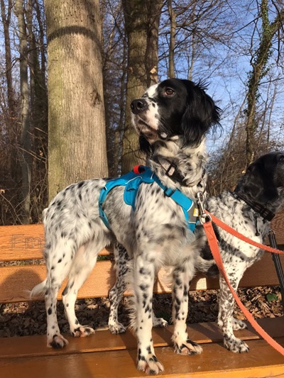 Wir leben in einem Außenquartier in einer Stadt und das war am Anfang für ELARA eine große Herausforderung. Es schien als kannte sie es nicht, so viel Menschen welche sich draußen langsam oder auch schneller fortbewegen. Das haben wir mit ihr mit genügend Abstand angeschaut und studiert, beobachtet und die Erfahrung gesammelt, dass die Menschen einfach an uns vorbei laufen oder rollen und nichts passiert. Sie wird es noch lernen. Große Personen mit lauter Stimme sind auch noch ein bisschen „gruselig“ aber ELARA ist ein sehr neugieriges und mutiges Settermädchen und traut sich jetzt langsam diese Menschen aus der Nähe zu begutachten. Wir denken sie hat einfach keine Erfahrung mit dem Leben so wie wir es kennen und taut bei allem was sie kennen lernt immer schneller auf.