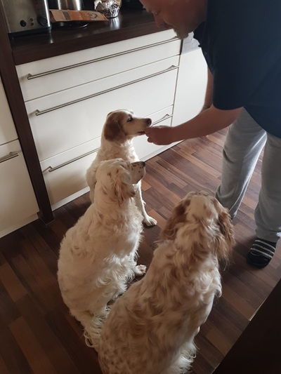 ERI ist putzmunter und wohlauf am 05. September 2020 im Setterland angekommen. ERI ist ein absolut liebenswerter kleiner Kerl. Seit er hier ist verfolgt er uns auf Schritt und Tritt. Es ist aber kein Problem mal eine Stunde wegzufahren und ihn mit Mia und Fabio allein zu lassen. Er ist sehr anhänglich und fordert sich seine Streicheleinheiten schon ein. Dann kommt er und stubst uns mit der Nase an und dann lässt er sich sehr gerne kraulen ...