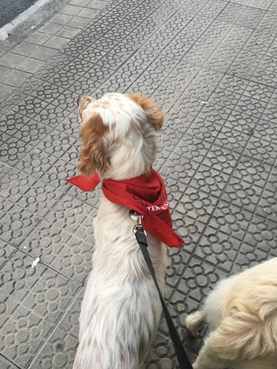 Nach ein paar kalte Stunden bin ich dann mit einem anderen Auto gefahren. Das war cooool! Da war ich auf dem Arm und es war warm. Kurze Zeit später musste ich wieder raus. Hey, da war ein anderer Hund. Der ist cool, da musste ich echt wedeln. Es ging dann Treppen rauf und dann in eine warme Wohnung. Die hab ich erstmal genau erkundet. Dann kam der Hunger. Ich habe leckeres Futter bekommen, zwei Hände voll hab ich erstmal eingesaugt .