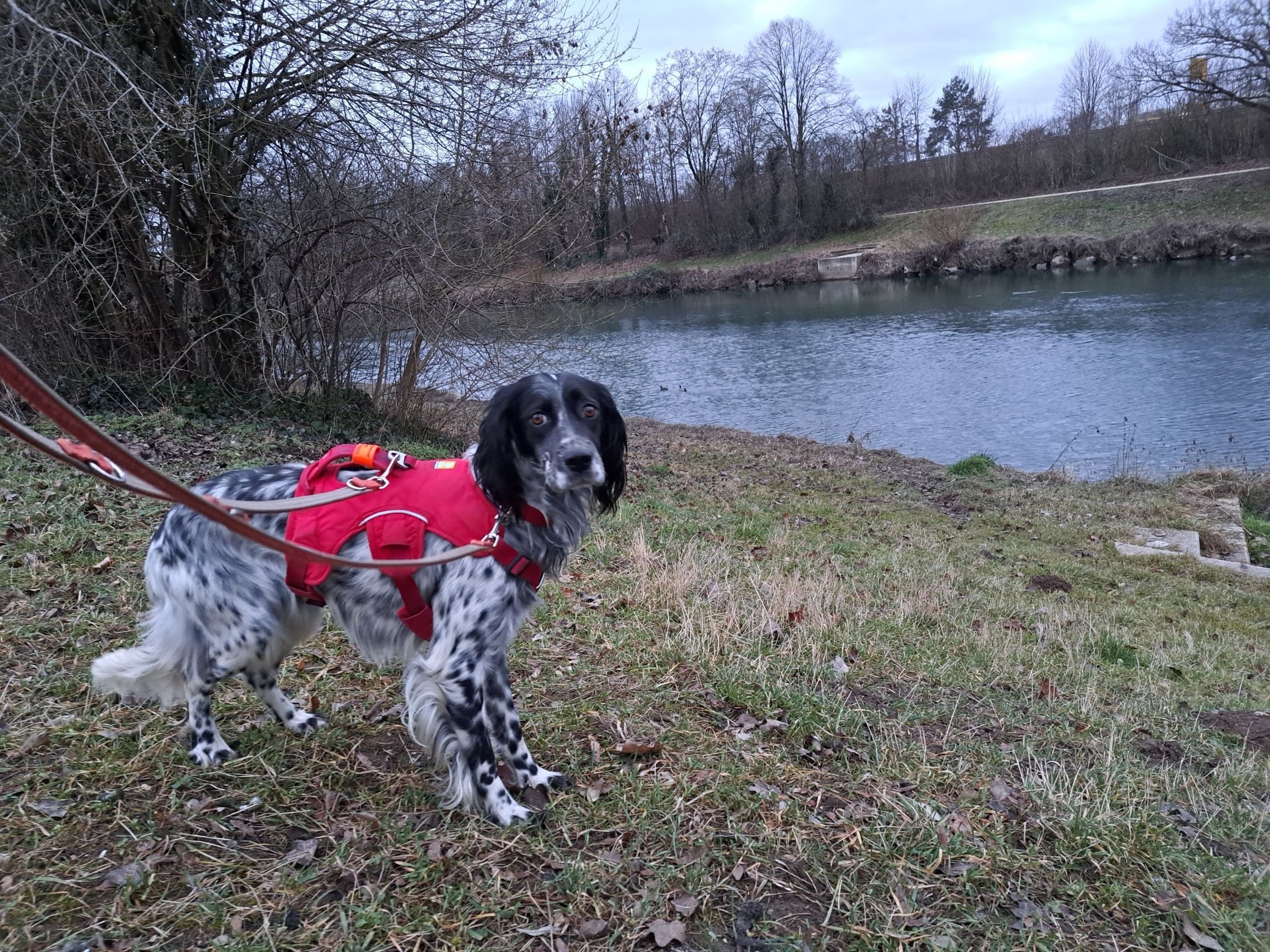 Es wird auch gerne den Enten am Neckar zugeschaut. Anfangs wollte Sie gar nicht mehr weiter, aber zurzeit reicht es die Lage zu sondieren und dann kann aber auch (widerwillig) weitergegangen werden. Rehe wurden auch schon aus der Ferne beobachtet und Mäuse sind ein willkommener Zeitvertreib zwischendurch. Das Pferd gestern Abend wollte Sie gerne schnappen, obwohl Sie ja ein Zwerg dagegen ist.