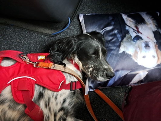 Die Treppen hoch in den ersten Stock war nicht ihr Ding und ist zurzeit mal so, mal so. Je nachdem wer mittläuft (vorneweg, hinterher). Abwärts ist es besser, jedoch sind die Haustüren doch ein Hindernis. Die Wohnung wurde ordentlich erkundet allerdings auch mit Vorsicht und dass man auf einem Sofa sitzen kann, wurde kurz erklärt und dann auch schnell verstanden. Für die Nacht wurde dann allerdings das bereitgestellte Kissen neben dem Sofa benutz. Aber nur in der ersten Nacht, in der zweiten war dann das Sofa dran. Mittlerweile schläft Fiona in ihrem Bett im Schlafzimmer.