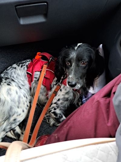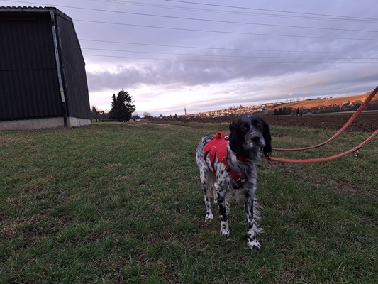 Das Gassigehen ist mittlerweile eine Routine. Anziehen ist kein Problem, es wird geduldet. Autofahren ebenfalls gut, allerdings das Einsteigen nicht. Beim Aussteigen auf den Feldern hingegen muss aufgepasst werden. Vor dem Haus jedoch muss überzeugt werden (es geht halt wieder rein?). Sie ist zwar schreckhaft (was weniger wird) aber auch sehr neugierig und wenn mal die Nase voll mit den Gerüchen ist, spielt alles andere sowieso keine Rolle mehr, dann geht’s hinterher.