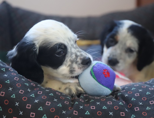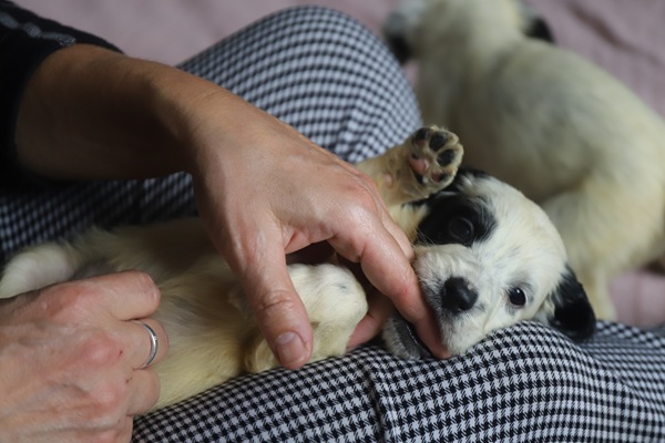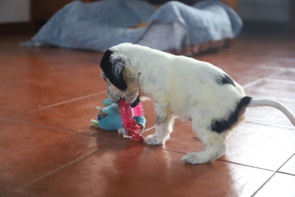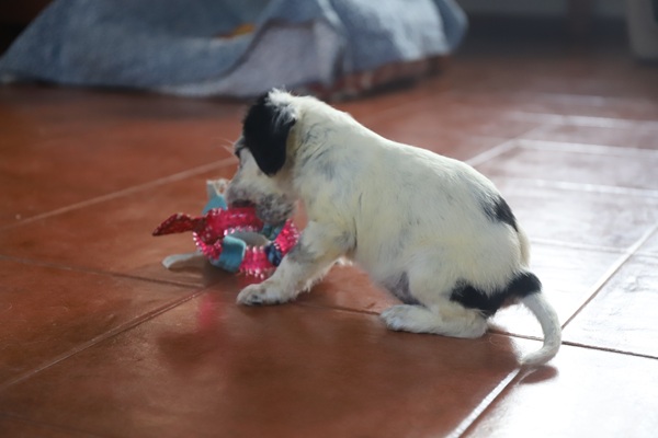Nun wohnen wir bei einer tollen Frau, die sich ganz liebevoll um uns kümmert. Wir sind pumperl gesund und spielen und toben den ganzen Tag. Endlich können wir das tun, was Welpen tun sollten ... Jeden Tag neues Erleben, mutig die Welt erkunden, Grenzen austesten, spielerisch Kräfte messen und ständig neue Erfahrungen machen.
