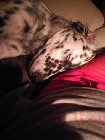 GALAHAD kam gesund und wohl auf am 17. August 2019 im Setterland an. Er ist sehr anhänglich, überglücklich wenn man ihn überhaupt nur anschaut - dann gerät der ganze Hund vom Schwanz her in Bewegung. Auch draußen muß er zwischendurch immer mal am Frauchen hochspringen, die Pfoten auf die Brust legen und somit seine "Liebe" bekunden.
