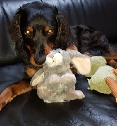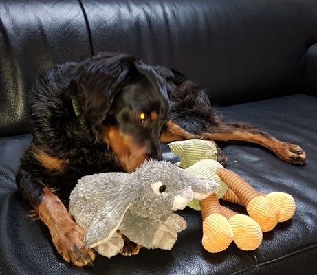 Wir freuen uns sehr für unseren Gordon Setter Breton Mix Rüden und seine neue Familie!