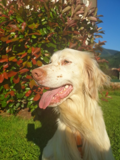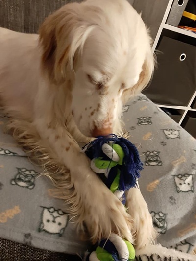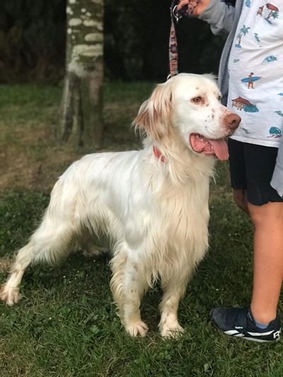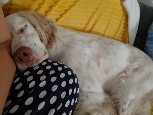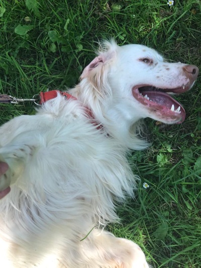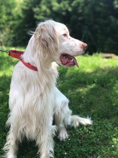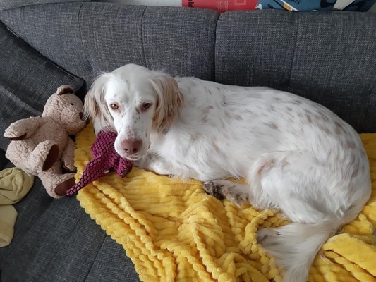 GRU kam gesund und munter am 25. Juli 2020 im Setterland an. Er ist ein richtiger Charmeur, der das Herz jedes Zweibeiners im Sturm erobert. Nach genauem Erkunden seines neuen Zuhauses hat GRU sich sofort wohl gefühlt und seine neuen Lieblingsschlafplätze getestet. In der Wohnung ist er sehr aufmerksam und folgt mir gerne durch die verschiedenen Räume, wobei er inzwischen auch ganz gerne nur von der Couch aus zusieht. Er spielt begeistert mit seinem Dinosaurier und macht bereits große Fortschritte bei den Grundkommandos.
