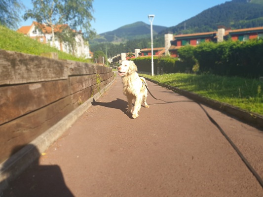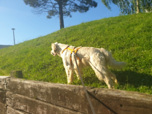 Draußen ist GRU entsprechend aktiv, reagiert aber zunehmend auf Rückrufe. Er könnte stundenlang schnuppern und freut sich jedes Mal sichtlich, wenn wir eine neue Route ausprobieren. In der Nachbarschaft hat er bereits zwei- und vierbeinige Freunde gefunden, die man auf unseren üblichen Runden gerne wieder trifft.