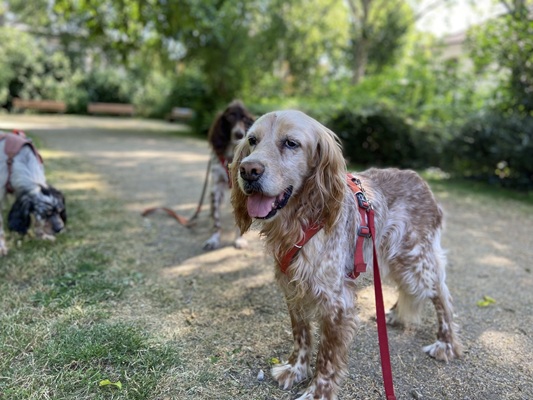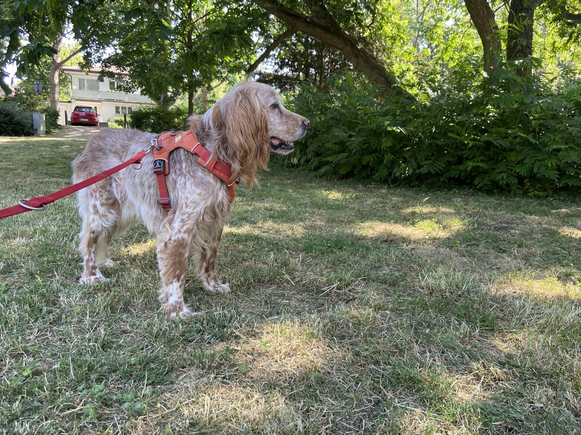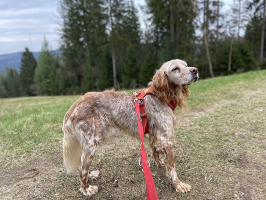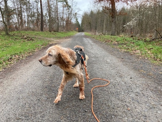 Meine Leidenschaft sind Spaziergänge da kann ich überhaupt nicht genug davon bekommen. Am Besten ist es wenn man beim Spazieren gehen viele Vögelchen beobachten kann. Ich bin ein passionierter Jäger und laufe im Moment noch an der Schleppleine. Mit fremden Menschen und habe ich keine Probleme da bin ich sehr neugierig ob sie nicht Leckerchen dabei haben und gehe freundlich auf die Menschen zu.