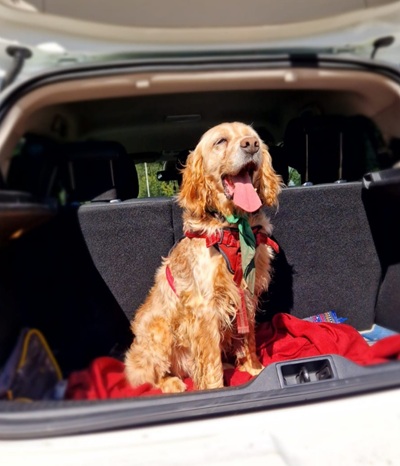 Eine andere Leidenschaft von mir ist das Autofahren. Dort könnte ich stundenlang sein in meiner gemütlichen Box mit meiner blauen Decke.