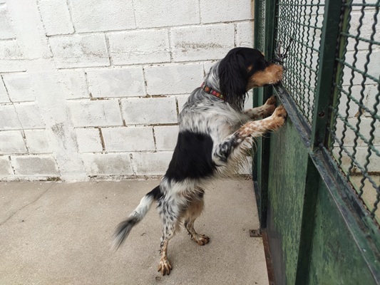 Man muss auch mal Glück haben im Leben. HOTZ landete – wie so viele Setter – unverschuldet in einem Shelter im spanischen Baskenland. Der Shelter dort ist extrem winteranfällig: Kalt und zugig ist es in den Zellen, wo teilweise mehrere Hunde untergebracht sind.